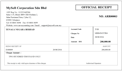 Mr. Accounting provide customer matching features to match payments with the outstanding invoices. Main purpose of matching is to record the status of invoices ranging from fully paid, partially paid or unpaid. Through this feature, you can avoid lost of invoices, save cost and time as it allowed you to match customer payment with selected invoices easily.Forget about manual writing receipts as Mr. Accounting provide the official receipt printout and email features for your reference.